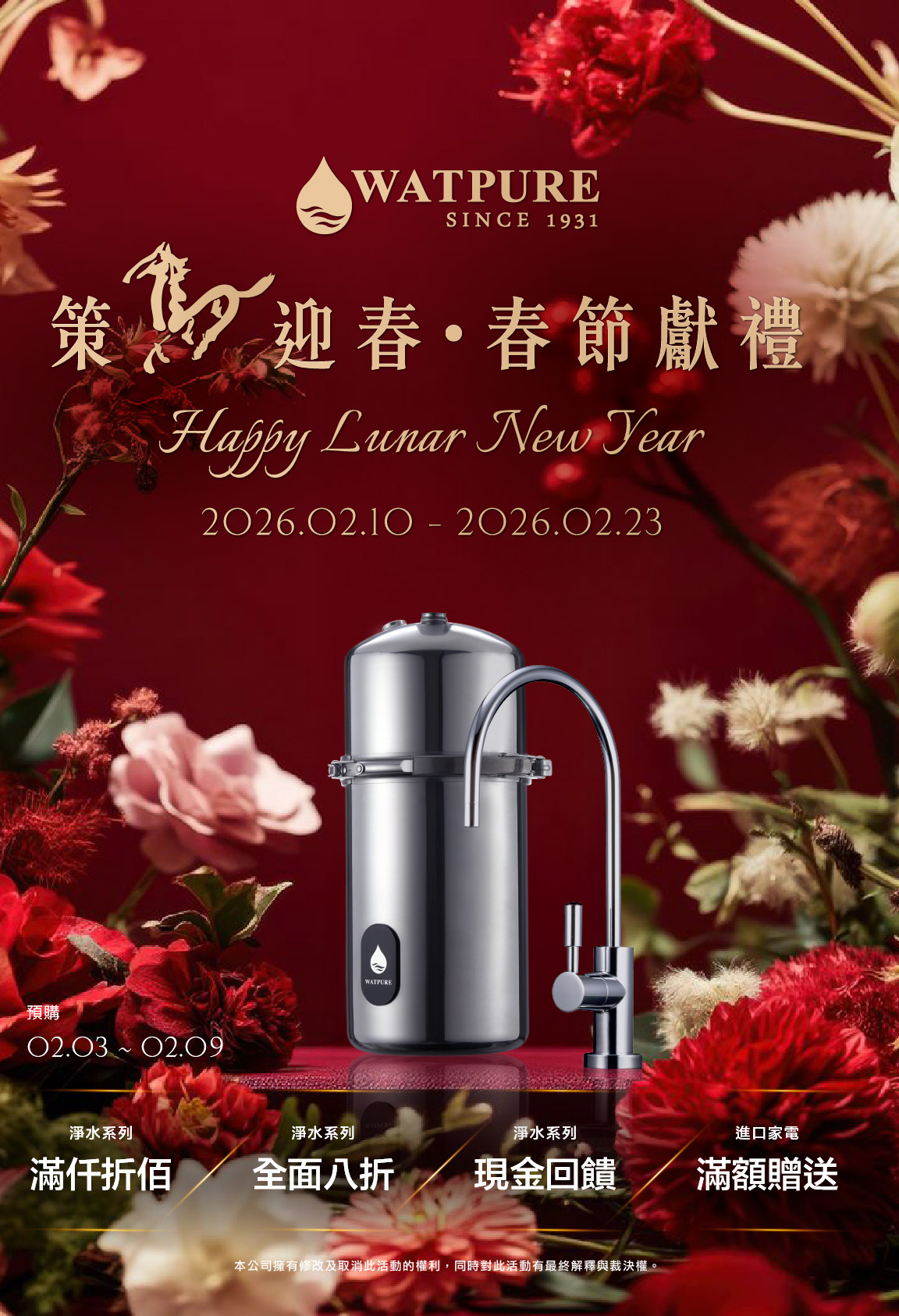 3. 購買WATPURE濾心產品系列不適用此活動